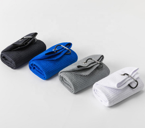 Serviette de Golf pour hommes et femmes, serviette en tissu microfibre, motif gaufrier, mousqueton robuste, accessoires de Golf, noire, haute qualité